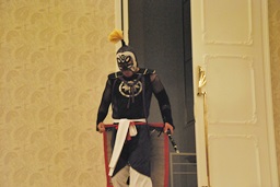 剣舞がコーナーに上ってアピール(左写真)。剣舞は5月にメキシコ、7月〜9月にイギリス遠征を予定。