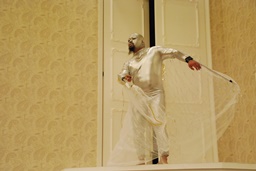 腕についたレース?を広げるとジュディ・オングの「魅せられて」が流れる(右写真)。