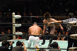 ハヤト「内容はどうあれ勝てたんで今日は俺の中では満点です。社長に対する思いを全て蹴りに込めて気合に込めて全てぶつけました。お客さんにはわからないこともあるかもしれない、でもこれが社長に対する感謝の気持ちとこれからのみちのくプロレスは俺たち若い世代に任せて下さいという気持ちです。」(右写真)