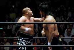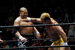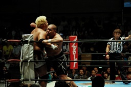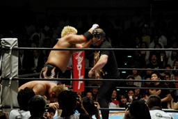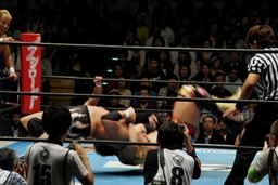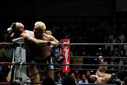 後藤ラリアット(右写真)、真壁にタッチ。10分経過。
