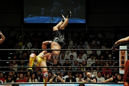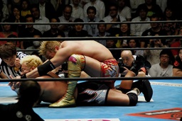 3人で持ち上げてパワーボム(右写真)、カウント2。