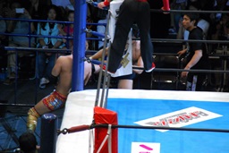 柴田キチンシンク(右写真)。オカダ場外エスケープ。