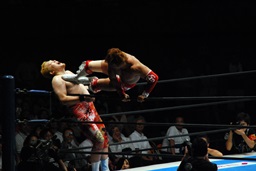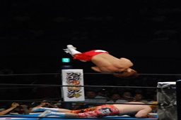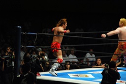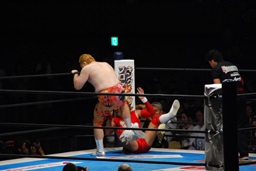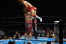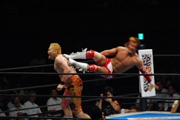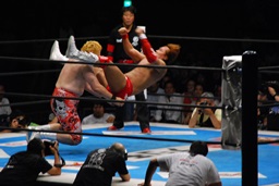 内藤パンチ、矢野かわしてマンハッタンドロップ(右写真)。