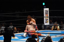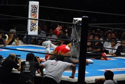 内藤延髄蹴り、コーナーに上げて雪崩式フランケンシュタイナー(右写真)。