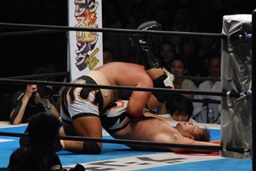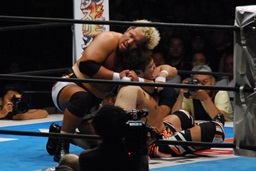 ドラゴンスープレックス(左写真)、カウント2。