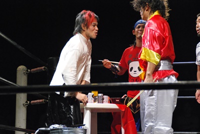 趙人気リングアナからこの闘いに至る経緯が説明される。もともと趙雲と孫悟空は新北京プロレスで競い合った仲。趙雲は第一回ヤング烏龍杯に勝利して日本留学の権利を獲得、一方孫悟空は中国で便利屋的扱いに。しかし最近、趙雲が日本で家庭を持ち、昔の輝きを失ったのではないかと考えた孫悟空は一騎打ちのために今回参戦。