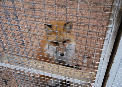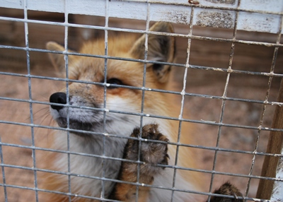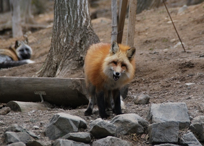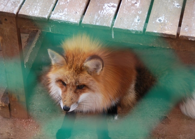 白石蔵王には8時35分着。駅前に1台だけ停まっていたタクシーに乗り込み「蔵王キツネ村」に向かう。天気が良ければ白石城でもよかったけどね。片道4100円、待ち料金は取らないということなのでタクシーに待ってもらってキツネ村に入村。700円。「動くものが好きなのでカメラはぶらぶらさせるな」「ポケットに手を突っ込むとエサだと勘違いして飛びかかる。」「かまれても自己責任」などの注意を受ける。意外に緊張感あるな。エサは買わず。入ると檻のエリアと放し飼いエリア。まずは放し飼いエリアに入る。キツネの方も慣れてるせいか「なんか来た」「エサか?」という感じでこっちを見るので写真は撮りやすい。
