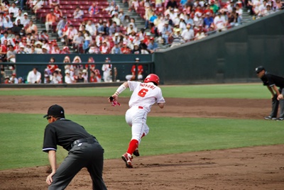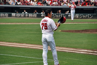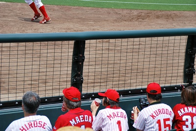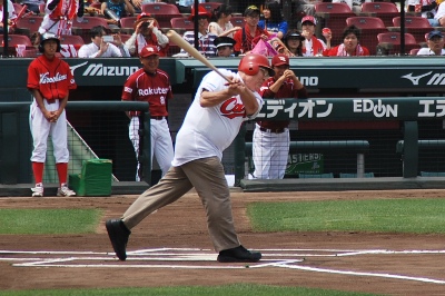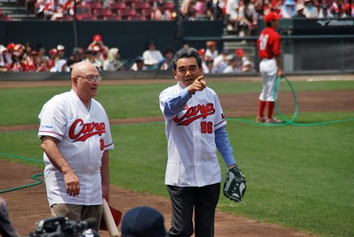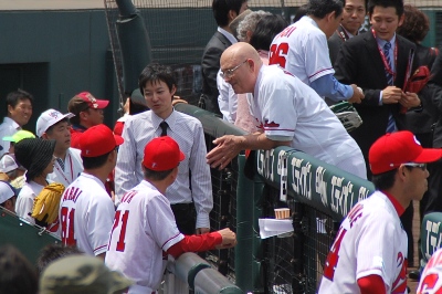 V1戦士のゲイル・ホプキンスさん(整形外科学会に合わせて招聘されたらしい)がグラウンドに。背番号はもちろん6。