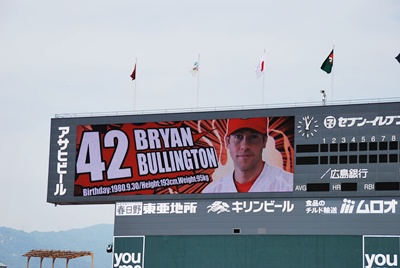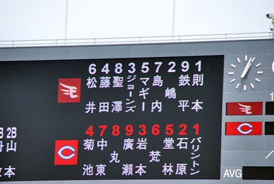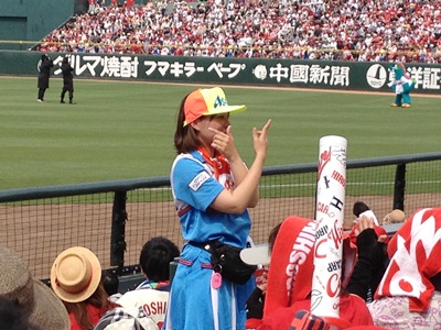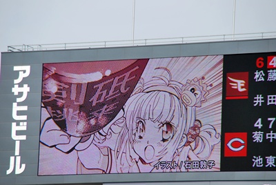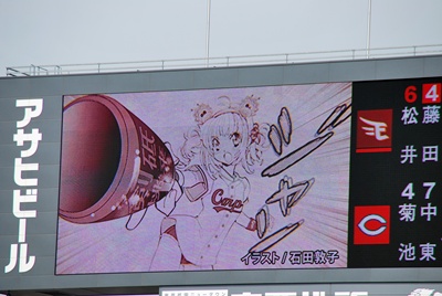 カープにファインプレーが出ると石田敦子のイラストがバックスクリーンに。