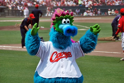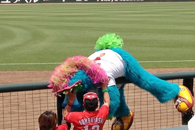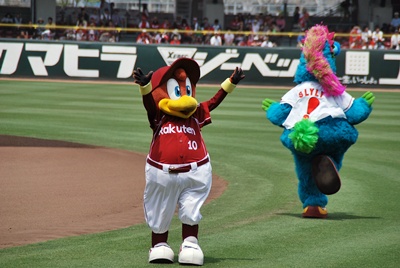 12時半にズムスタに着くとスライリーと楽天のマスコット・クラッチが記念撮影に応じていた。