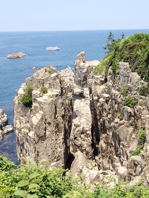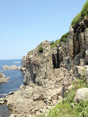 5時起き、6時の電車で新宿に。15分のバスに乗るが寝れず。羽田空港の新大和で朝食、7時55分出発、機中ではほとんで寝てた。PC持ち込んだ意味なし。8時54分の予定時刻ぴったりにJAL小松行き1273便は到着。小松駅へのバスは路線バスのため連絡しない、とのことなので(停留所に書いてあったので事前にはわからず)定時運行感謝。小松駅からは北陸本線各駅で南に下り芦原温泉駅に。9時59分着。ここからは京福バス。まっすぐ越前松島水族館に行ってもよかったのだが、バスルートの途中だし、天気もいいので名勝・東尋坊に寄ることに。10時50分「遊歩道入口」で下車、荒磯遊歩道を歩いて東尋坊に。暑い。