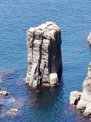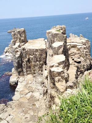 柱状節理。てっぺんがヘリポートみたいに平たくなってるのが不思議だ。