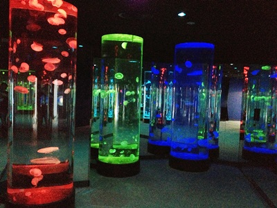 ライトアップされたクラゲ。ここは展示が工夫されてるなあ。