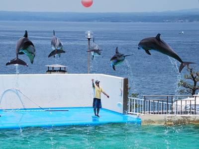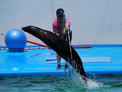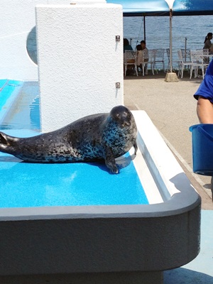 12時半から越前松島水族館名物、カワウソのアマゴ漁。生きたアマゴをプールに放し、カワウソが飛び込んで捕まえ、自ら上がってそのままむしゃむしゃ。その瞬間の写真は撮れず。