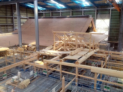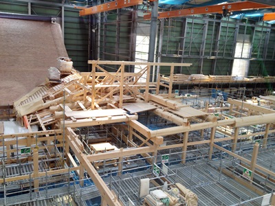 ヘルメットかぶって工事現場も見学。足場は現代風だが工法はできる限り歴史的なやり方だそうだ。