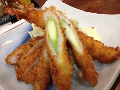 バスの時間を間違えて水族館を早く出てしまったので園内散歩、「アロワナカフェ」に入ってビール&飛騨牛コロッケ。