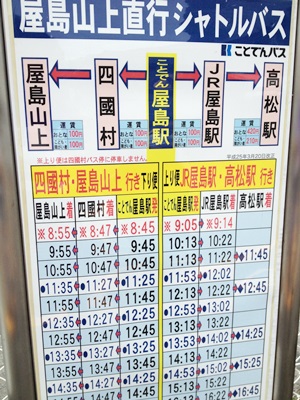 ここから屋島山上へはシャトルバス。山に登るのに「下り線」という表示に違和感。