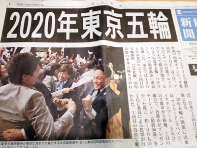 朝5時くらい?(iPhone電源入れてないので時間も分からない)に下関の王司PAで休憩。壇ノ浦って話だったのにちょっと手前?iPhoneはなんとか100%まで充電できた。博多着は予定より早い7時。運転手に西鉄イン博多の入浴券をもらい、西鉄インに。これは立派な大浴場。これが300円で入れるというのはいいサービス。1時間くらいいてマッサージチェアも使ったよ。これで縮こまってた体も伸ばせたし、疲れも取れた気がする。風呂上がって駅に行ったら東京五輪決定の号外配ってた。まあ積極的賛成ではないけど決まったものは反対もしない。