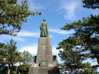 バスターミナルに行くと38分発桂浜行きが出る寸前だったので、安い切符を買うのも忘れて乗る。毎回これだ。13時20分桂浜着。670円。まずは龍馬さんの後姿(どうでしょう的ショット)。