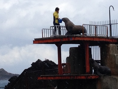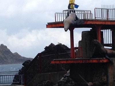 まずは海獣水槽に。モロ海辺。これは確かに野生のトドが入ってきてもおかしくない(2例ほどあったそうだ)。