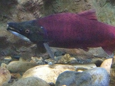 仕方ないので一周。ベニサケが「婚姻色」でまさに紅色。