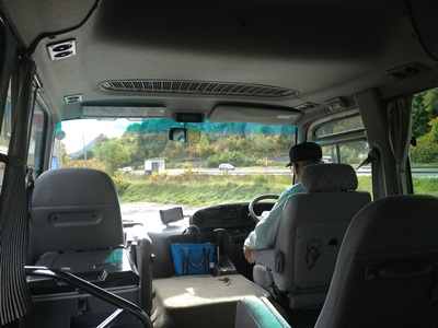 バスは1時間以上走って南区を通過、豊滝小学校前という山の中のバス停に。ここでノースサファリサッポロ行きのシャトルバスに乗り換えなきゃいけない。駐車場見渡すとボロいバスが何台か並んでて、おじいさんが1人。聞いてみるとやはりこれがシャトルバスで、人が来たら乗せる方式らしい。ノースサファリサッポロまでは5分ほど。