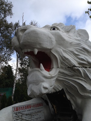 9時、入場。入口のライオン像。