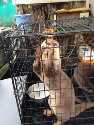 コツメカワウソのリコと太郎は今日は散歩できないとかでケージの中に。昔TVに出てたということでなかなかの美形。