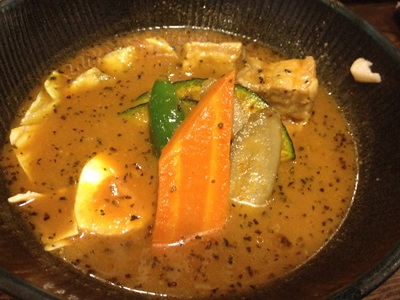真駒内からは地下鉄南北線でさっぽろに。駅近辺のスープカレー屋検索すると駅ビルに「lavi」という店があるようなので直行。ちょっと待ったが12時には食えた。マジックスパイスのようにやたら辛いのではないスープカレー。うまいなあ。今度行く時もここにしよう。気温が上がってきたので朝着てたロングTシャツを脱ぐ。