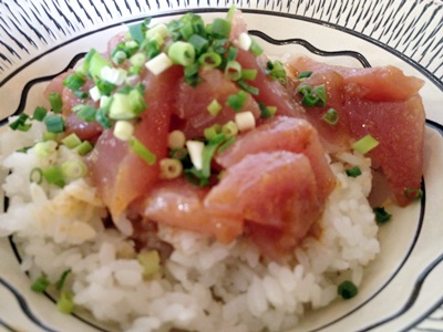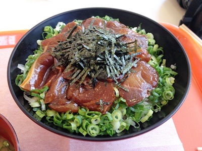 12時、ピースも昼食でいなくなったので一旦イルカ島を出て出てマルシェで「ひゅうが丼」(マグロのゴマだれ丼)で昼食。