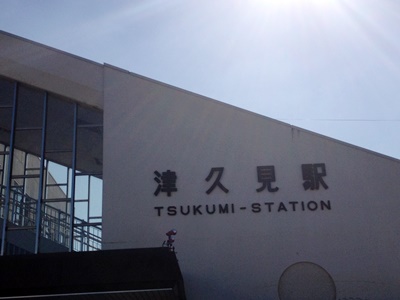 逆光の津久見駅。