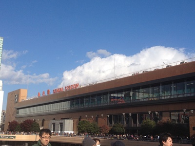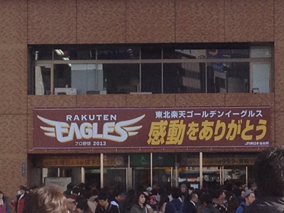 今日は朝から楽天ゴールデンイーグルス日本一記念パレードということで駅はエンジ色でごった返していた。