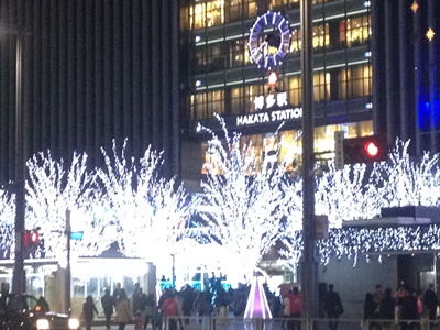 17時50分着、地下鉄で博多駅に。予約していた東横イン博多駅南がえらい遠かった。地図読み間違えたか。荷物置いて夕飯食いに。博多駅のイルミネーション。