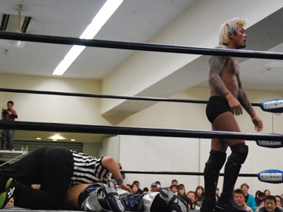 15時15分からDDT博多大会。坂口がHARASHIMAを落とす戦慄のフィニッシュ。前哨戦はこうでなくっちゃ。これによりアイアンマンヘビーメタル級王座が坂口に移動。観戦記はこちら。