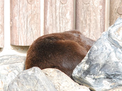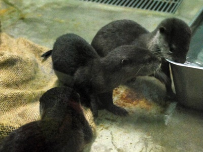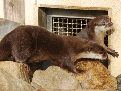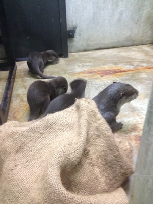 カワウソ舎に行くと外で2頭寝てた。これがカイとぴゃぁか。ローズっているのかな?部屋はもう一部屋あるけど。ローズのことが書いてあるブログで確認するとこの部屋のようだ。