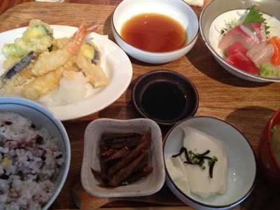 薬院までバスに乗り、歩いてFISHMANに。ちょうど昼の第1陣がはけるところで入れた。天ぷら&刺身定食。