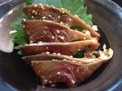 電池残りが20%になってたのでヨドバシでiPhoneの充電してたら店員に捕まったので45%状態で離脱、コンビニでケーブル購入。17時に「信長本家」に入って飲み始める。まずはごまさば。