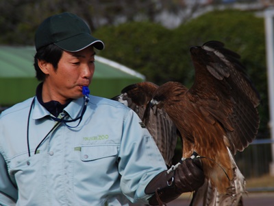 起きるの待ちつつ歩いてたらミミズクの訓練が始まった。