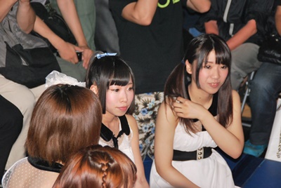 桃知がアイドルから感想を聞く(右写真)。