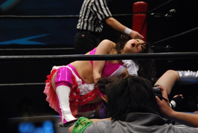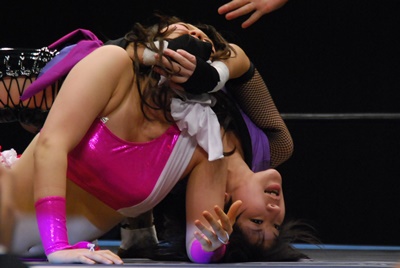 山下バック取る、木場カサドーラ(右写真)、カウント2。