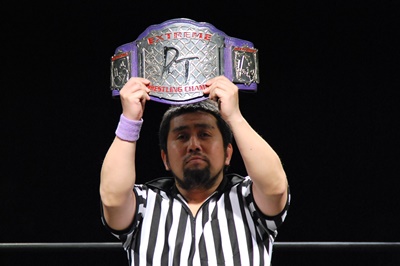 DDT EXTREMEのベルト(左写真)。本日のルールは通常ルール。
