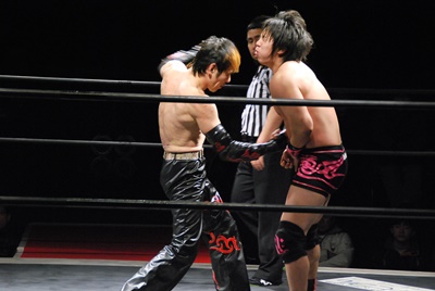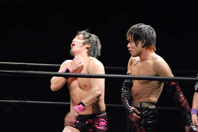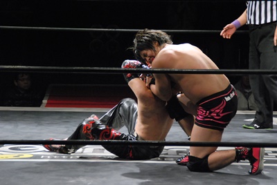イサミブロックしてブレーンバスター(左写真)。