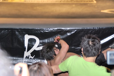 石井イサミを花道に上げトップロープ越しのジャーマン狙う(右写真)、