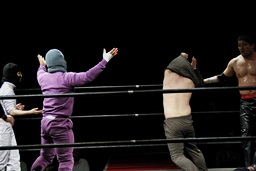 そこに新たな謎覆面が2人も(右写真)。まさかの2人。