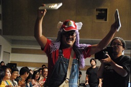 やっぱり2人に決めてもらおうとリングに呼び込む(左写真)。