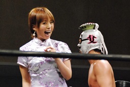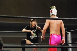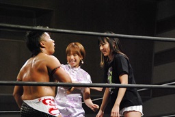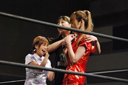天海つばさ、星美りかの両DIVAは紫雷美央とリングサイドに(左写真)。