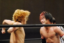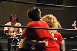 福田「でも僕はメインイベントでイサミさんたちと試合をしたかった。今日はその目標が達成できてよかったです。楽しかったです。ありがとうございました!」(左写真)