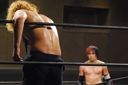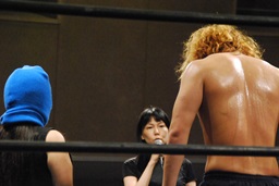 福田「イサミさん、わかっています。謎覆面はこれで終わりです。僕は2年前にユニオンに入って第1試合、第2試合、第3試合と前半戦で試合をしてきて、それなりにやってきた自負があります。」(左写真)