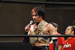 最後はイサミが「このトーナメントも俺がチャンピオンです。」と締める(左写真)。