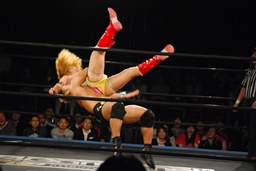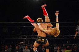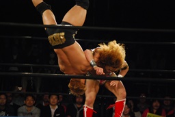 諸橋2で返すとクリップラー・クロスフェース、福田丸め込んで(左写真)カウント3。
